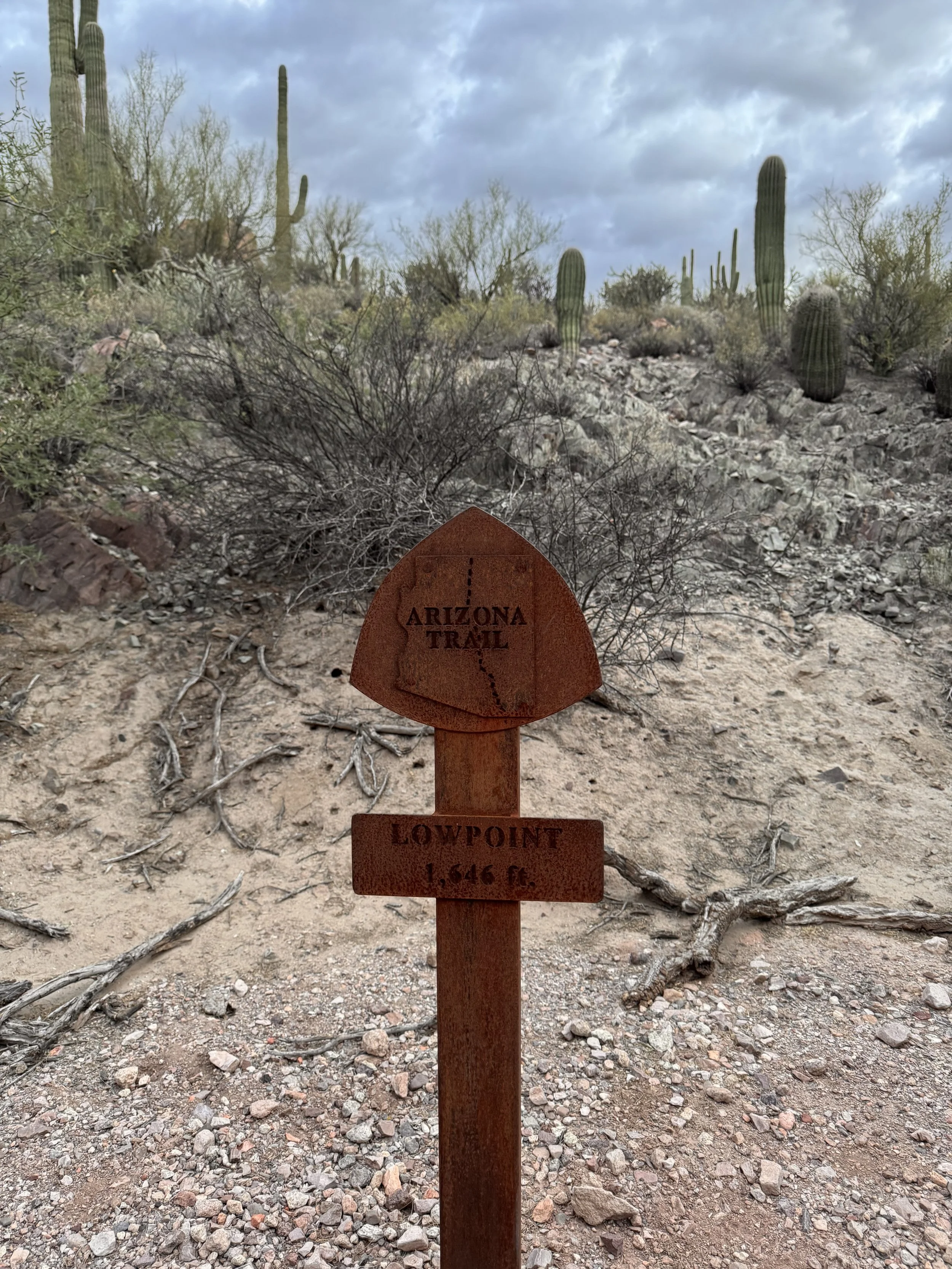 The next morning I was up at 0510, packing up camp, and filtering more water. I was on trail by 0545. I quickly came across the lowest point on the AZT and took a photo. The morning was amazing. I had a 10 mile climb up into some lovely mountains. The grade was easy and fun hiking.