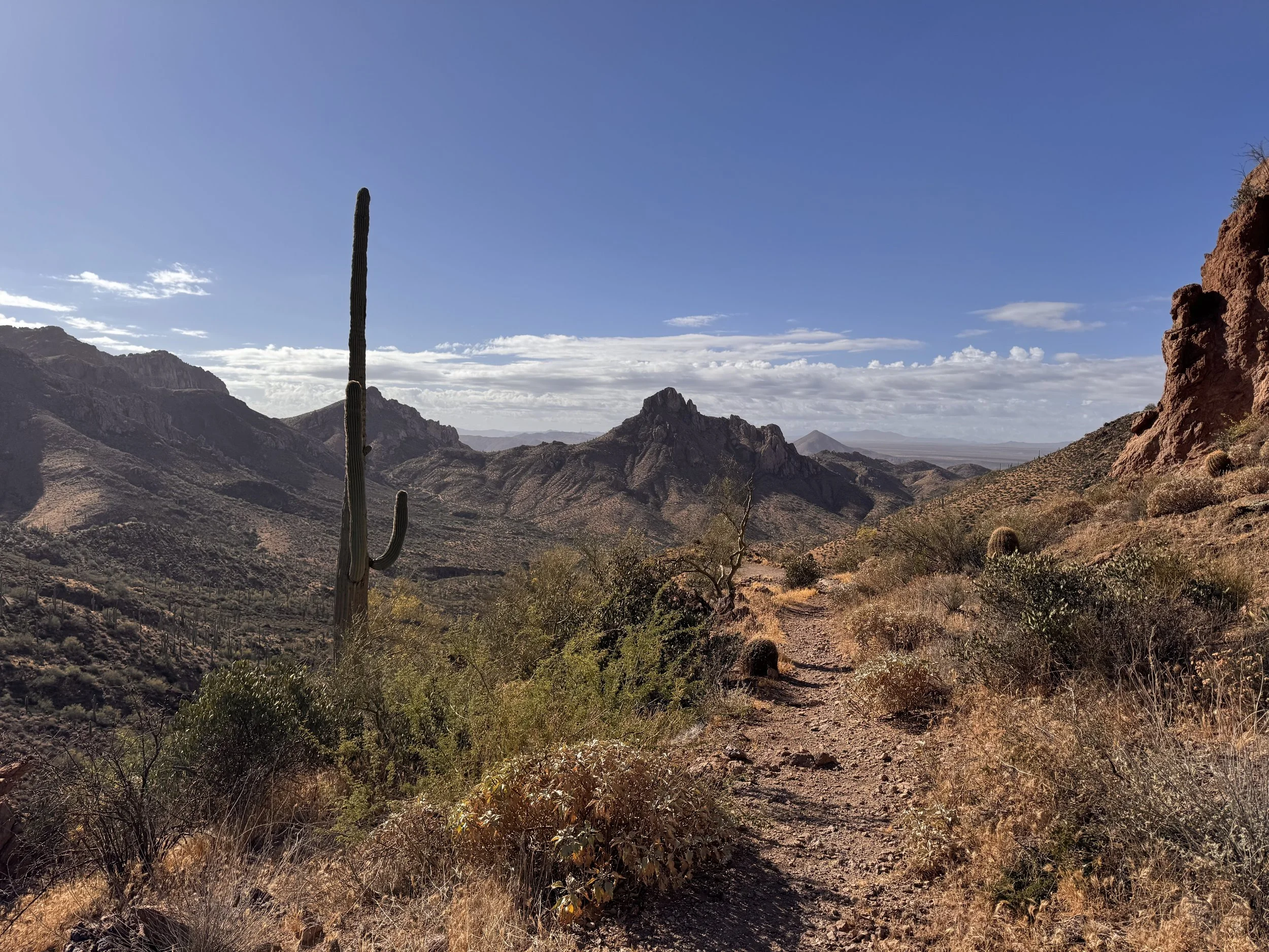 The next day was a lazy morning. MJ made us blueberry pancakes with eggs and sausage on the side. It was tasty. The three of us staying, Boomer, Wild Child, and I, went out to town so I could get my resupply. I also wanted to check out a cool looking coffee shop. Unfortunately it was closed unexpectedly. We walked to the other coffee shop that was supposed to be open and it too was closed. Oh well. The town is an old mining town that’s hanging in there. It sits under the shadow of Apache Leap, which the government unfortunately sold for mining recently. They plan to flatten the area with the type of mining that will be done there despite the area being an important spiritual site for the Apache tribes in the area. We went back to the house to relax more before heading to trail at 1300.