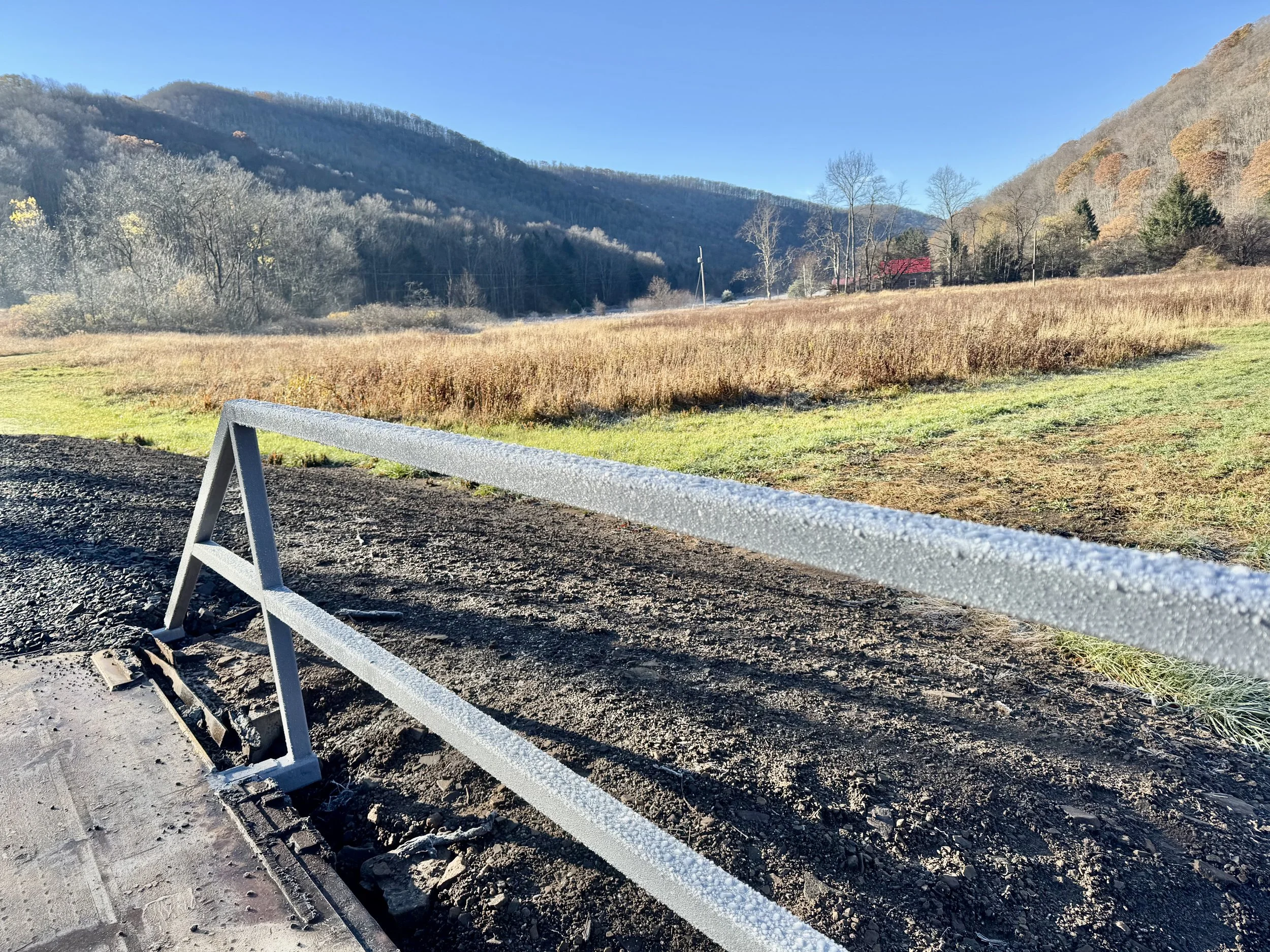Down to Stony Run was a bit slippery with the frost the lower I got. It didn't seem as cold as the morning before, but it was still in the 30's when I left the shelter. I walked along the stream for a bit before a long and steady climb up another old road, just to drop right back down. It was a steep little section and then a gradual descent to E Fork Road and a populated valley. I was wrong about it not being as cold. Even at 0900 in the morning, there was ice and frost over everything in this area.